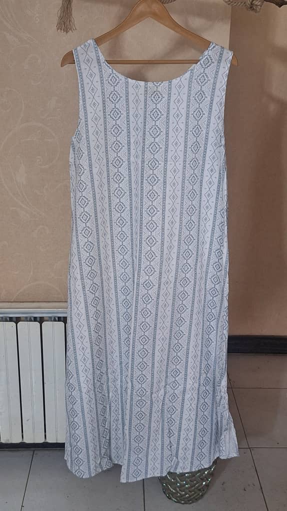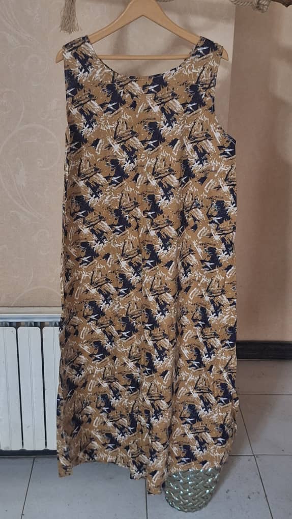 سارافن کلوش لینن طرح دار|فری سایز(38 تا 46)| خنک، راحت و همیشه شیک