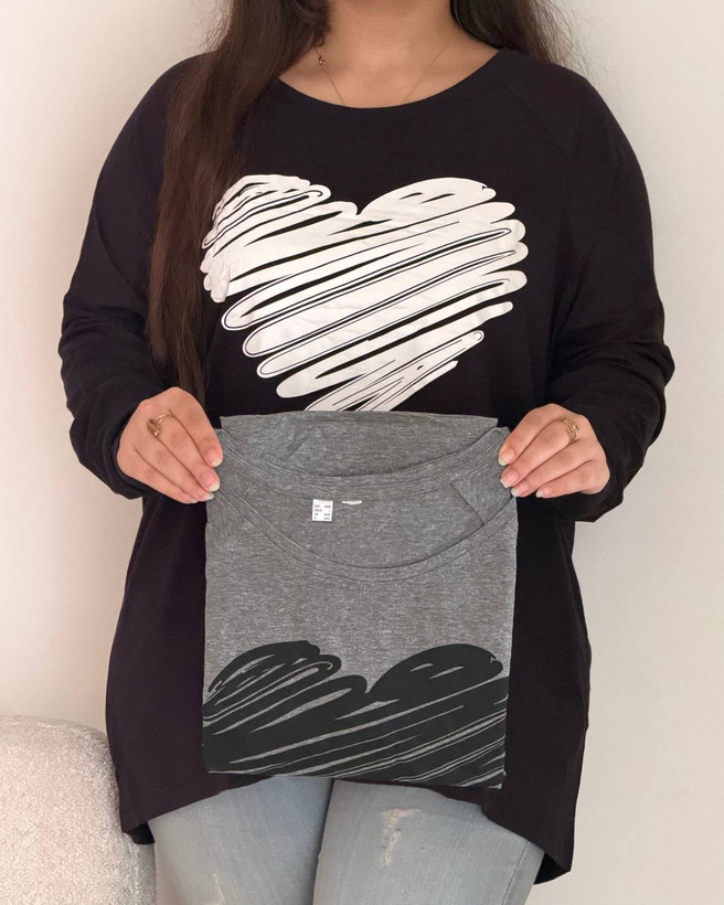 نوع محصول: بلوز وارداتی نخ پنبه آستین رگلان با طرح چاپ قلب