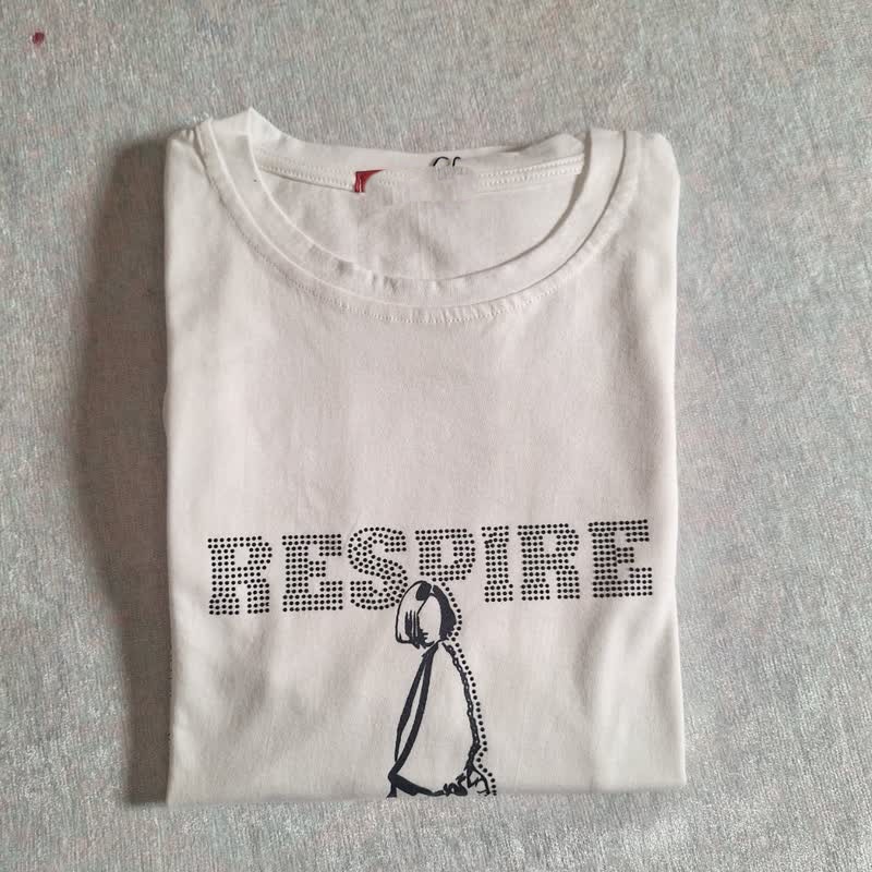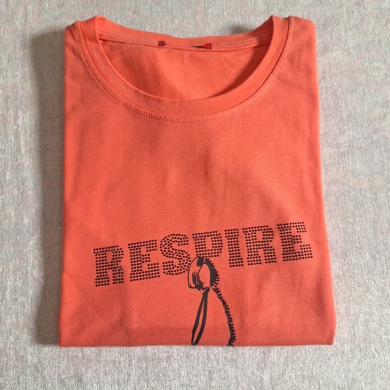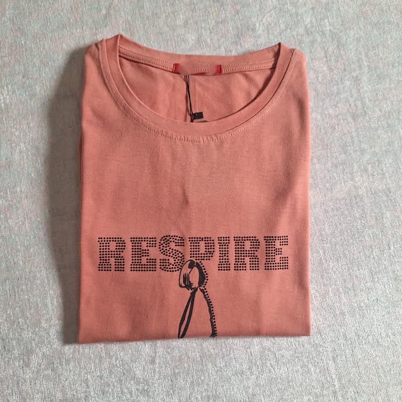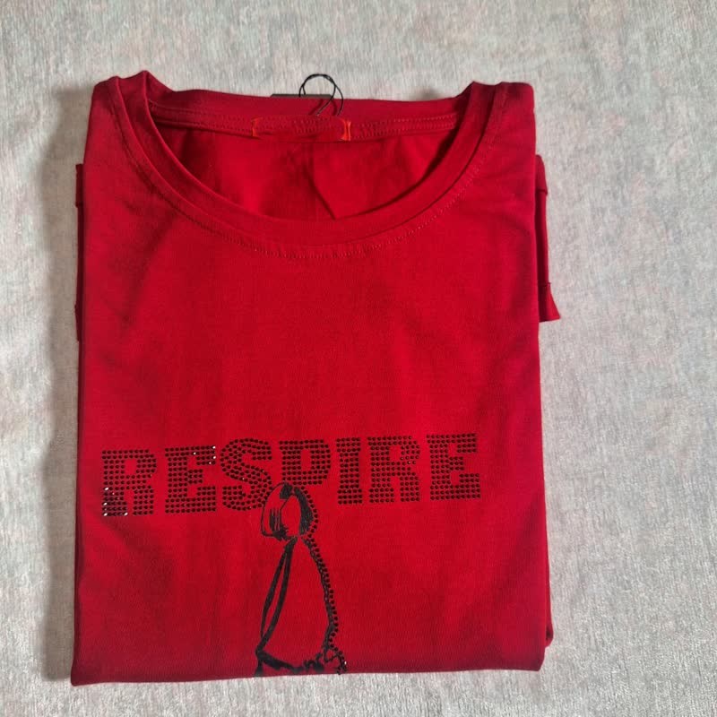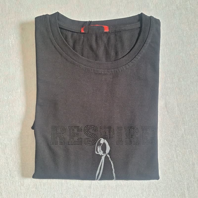 این تیشرت با طراحی مینیمال و نوشتهی «Respire» که با نگینکاری ظریف کار شده، جلوهای شیک و چشمگیر به استایلت میده. مدل آستین سرخود باعث میشه روی تن فرم آزاد و جذابی داشته باشه و چاک بغل هم علاوه بر زیبایی، راحتی بیشتری موقع حرکت ایجاد میکنه.